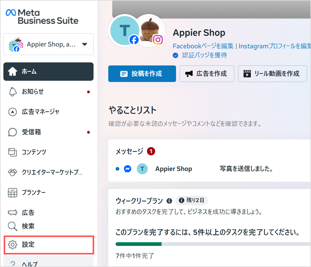 - Meta Business Suiteアカウントにログインします。